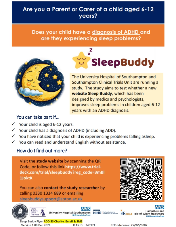 The DISCA sleep study is a research project that aims to help parents, carers, and health professionals to manage sleep problems in children with ADHD. Almost 75% of children with Attention Deficit Hyperactivity Disorder (ADHD) have sleep problems. Parents and carers tell us that poor sleep makes their children’s daytime behaviour and schoolwork worse and affects the quality of life of the whole family. You can now enrol your child onto this research project .